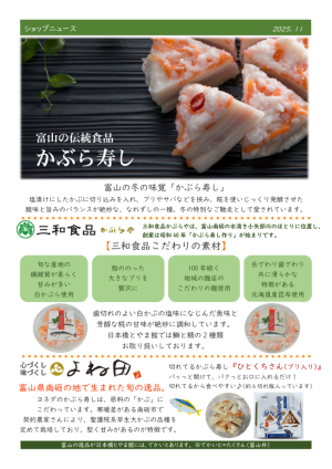■ショップフロア・・・(ショップニュース、入荷カレンダー、ます寿し入荷予定表)