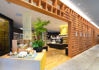 除了有購物商店、和食餐廳以外、還有能夠品嚐富山當地酩酒的酒吧、觀光交誼廳以及展演廳等等、各式各樣的空間、超越藩籬地發揮綜合訊息傳送功能的據點─日本橋富山(TOYAMA)館終於誕生。我們用富山縣所產原木的四方角材組合成開放式的大型壁面、表現出立山連峰的稜線、來迎接各位貴賓蒞臨。